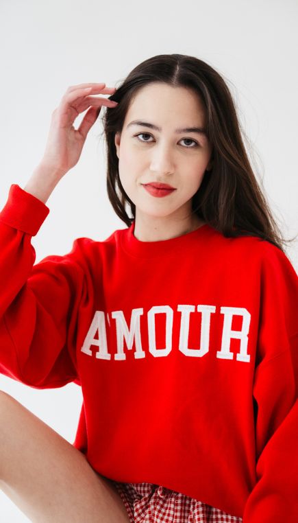 1897 Active Amour Embroidered Fleece Sweatshirt for Women in Red