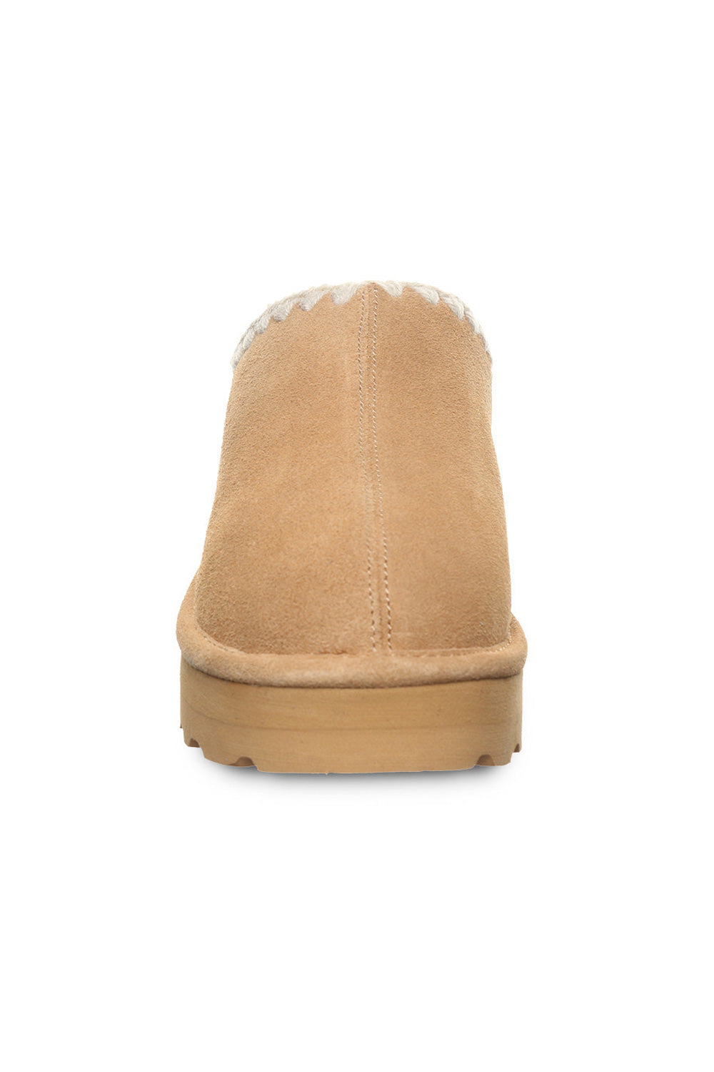 Feel right at home in the Bearpaw Crotchet Martis Slippers for Women in Iced Coffee. The upper is made with a soft suede with a wool blend lining, providing a luxurious feel. It also features a textured crotchet trim for extra style points. Comfort and durability come together with the platformed cushioned footbed and rubber outsole for a versatile slipper you can wear indoors or outdoors.