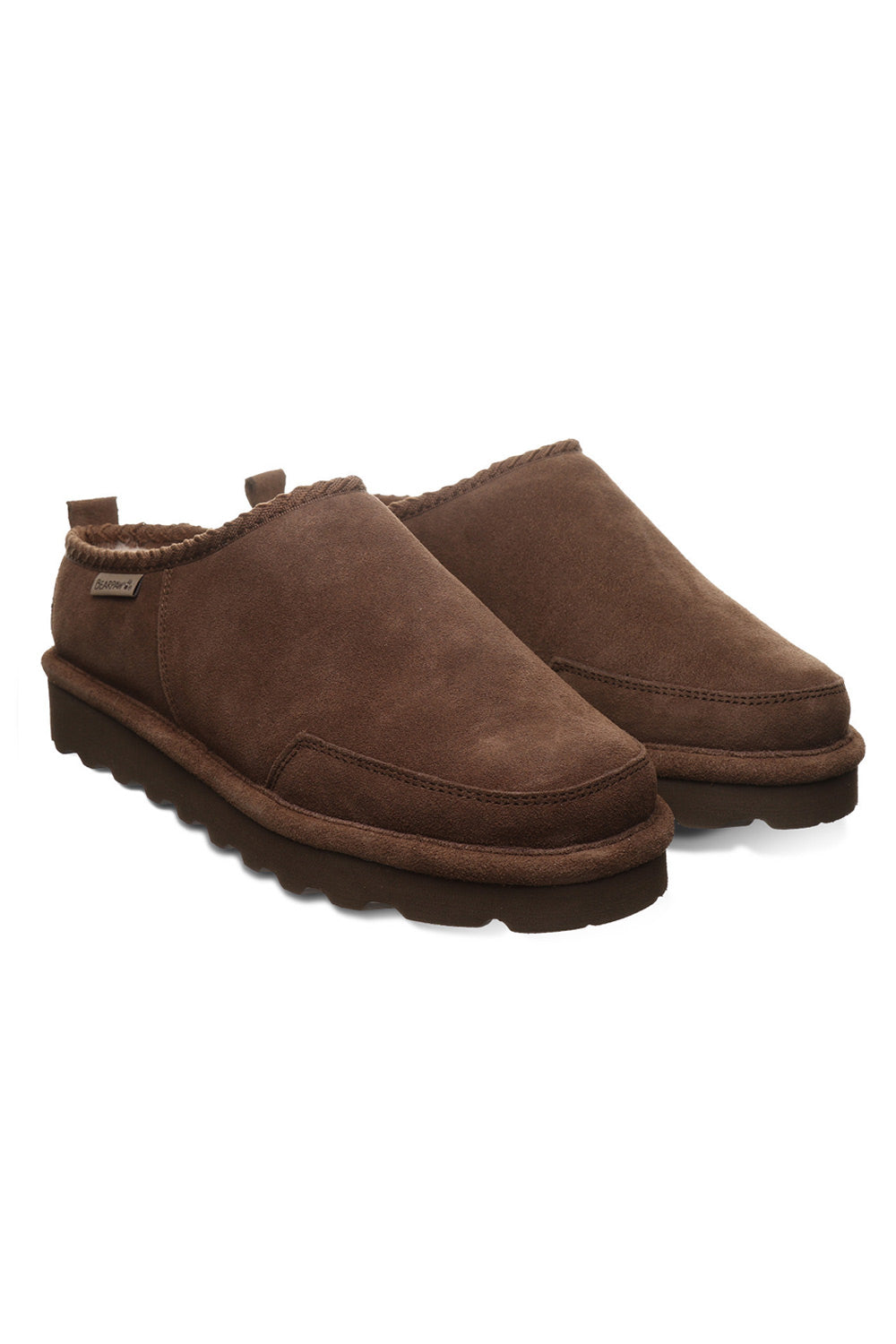 Relax and feel the comfort in Bearpaw Damian Slipper for Men in Earth. The upper is made with a soft suede with a wool blend lining, providing a luxurious feel. Comfort and durability come together with the cushioned footbed and rubber outsole for a versatile slipper you can wear indoors or outdoors.