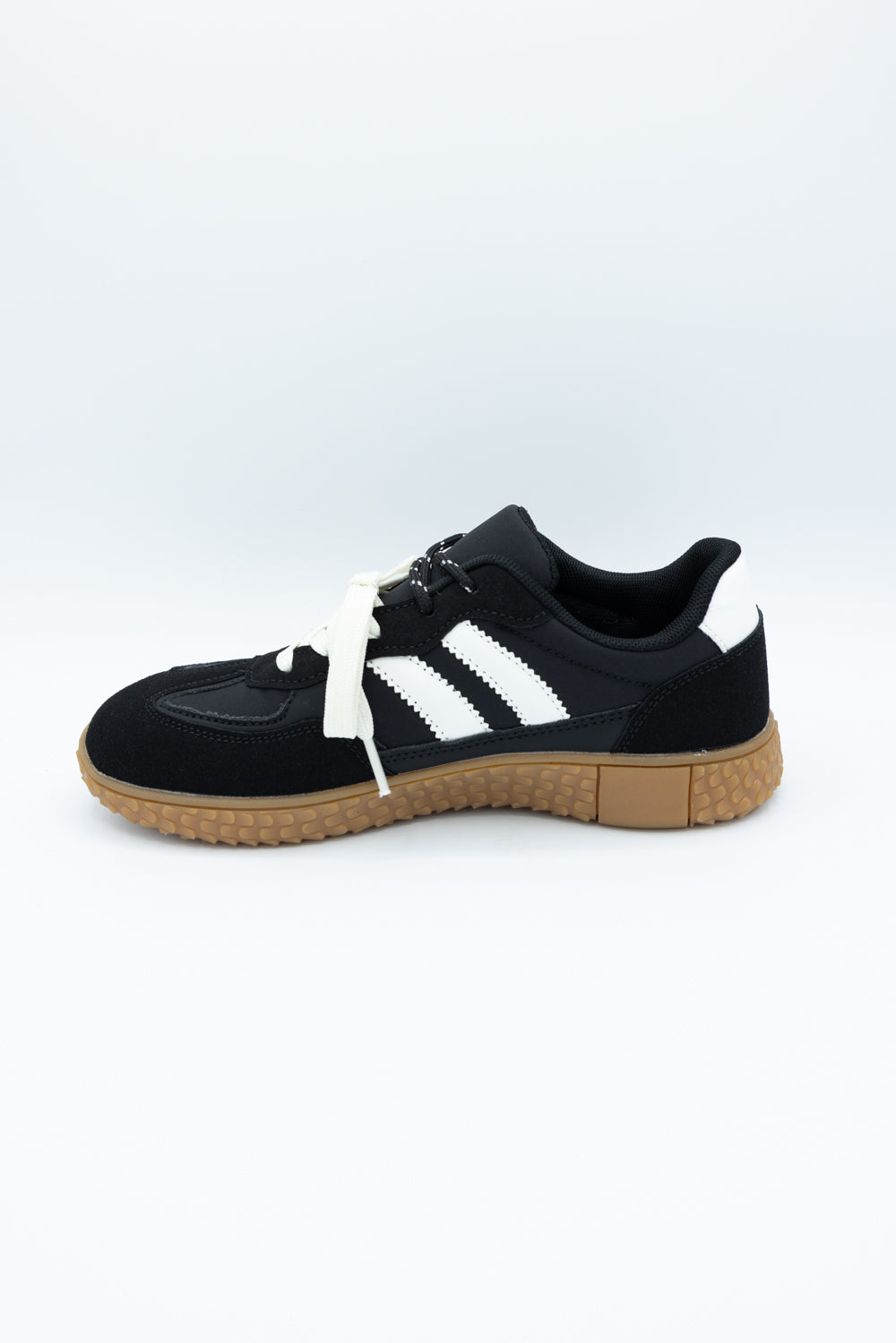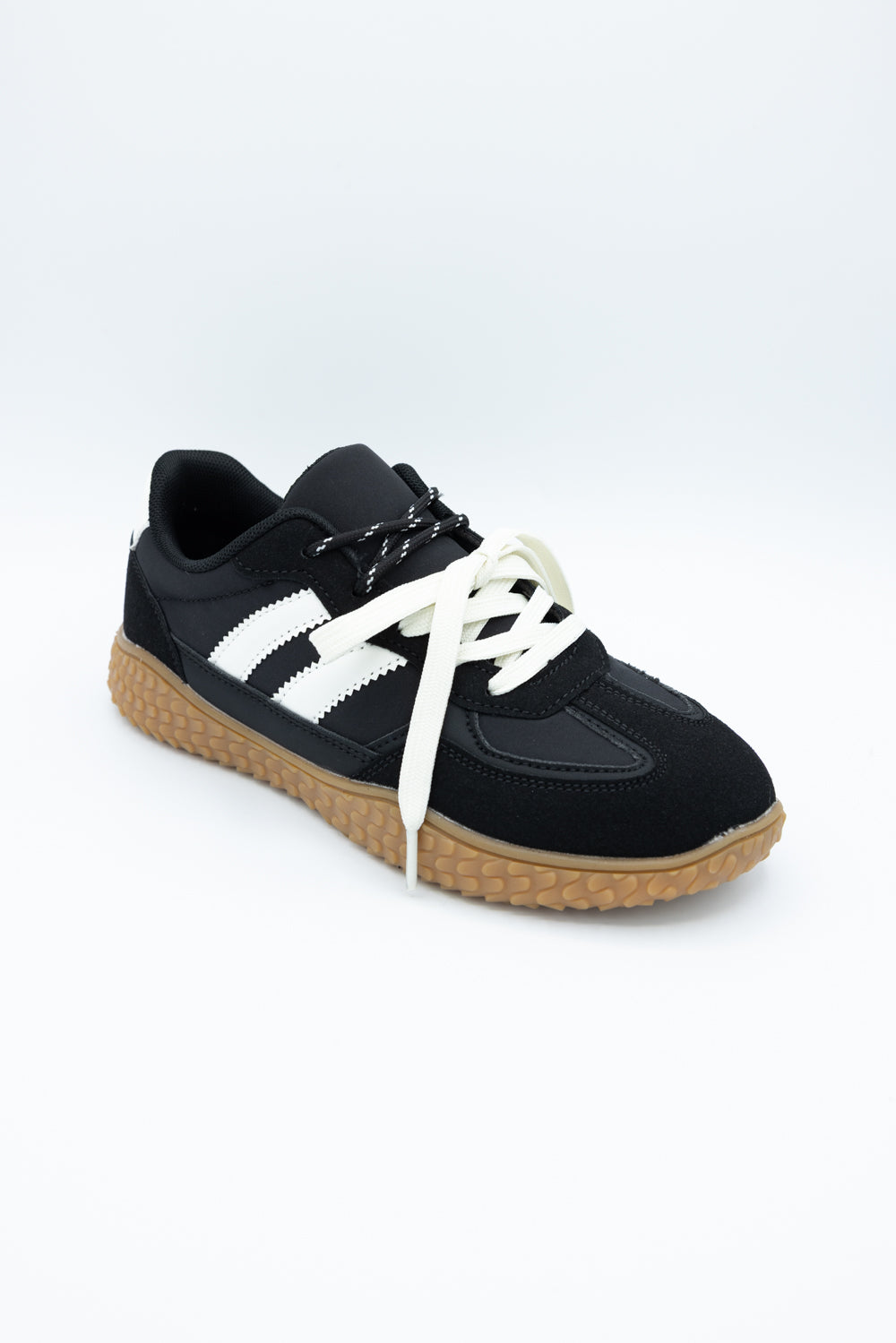 Slip into these Berness Gillian Sneakers for Women in Black. These adorable sneakers are striped with a vintage sporty contrast, classic laced low tops, textured outsole and a retro-inspired look. This is going to be your new favorite sneaker!