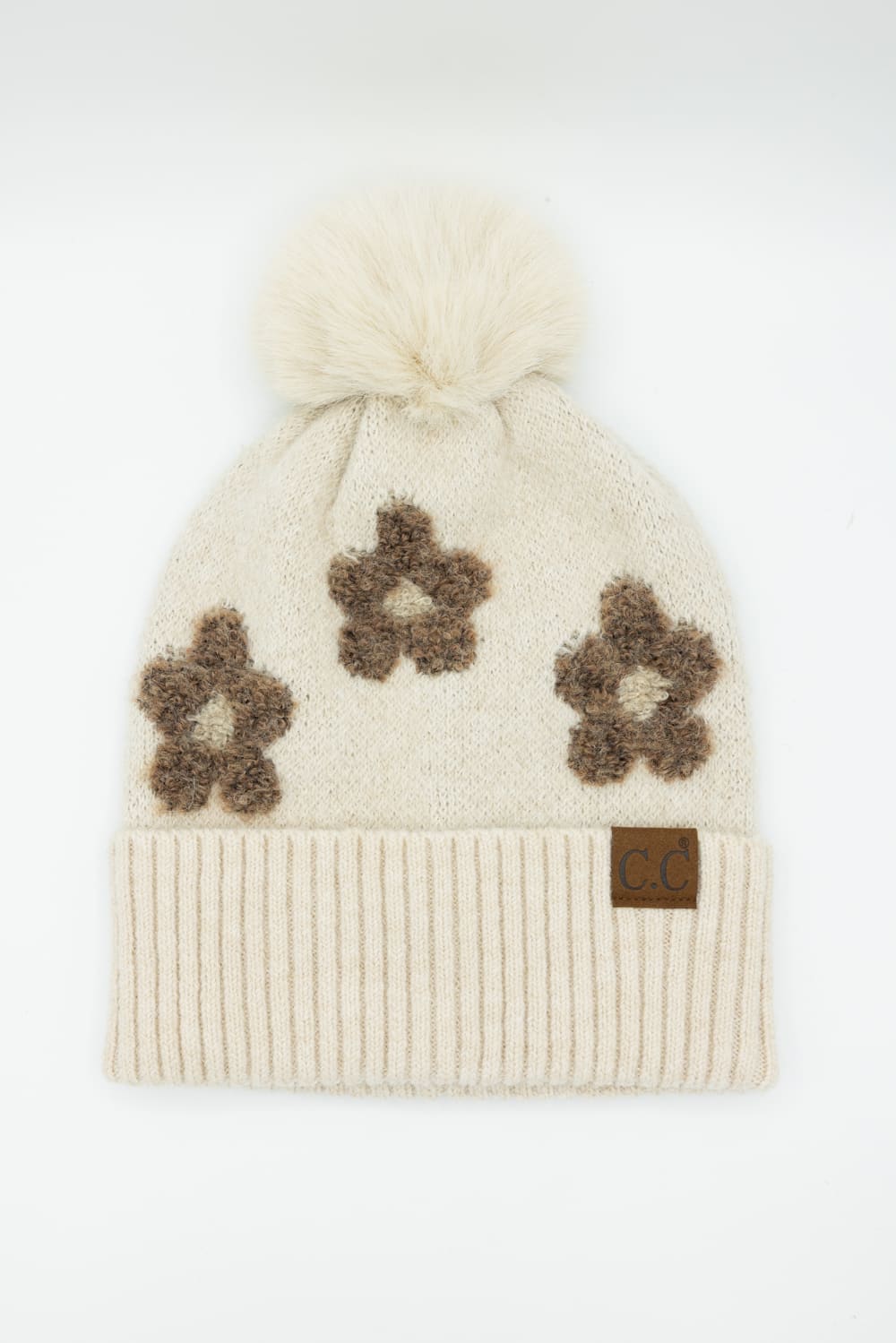 C.C. Daisy Pom Beanie for Women in Heather Beige