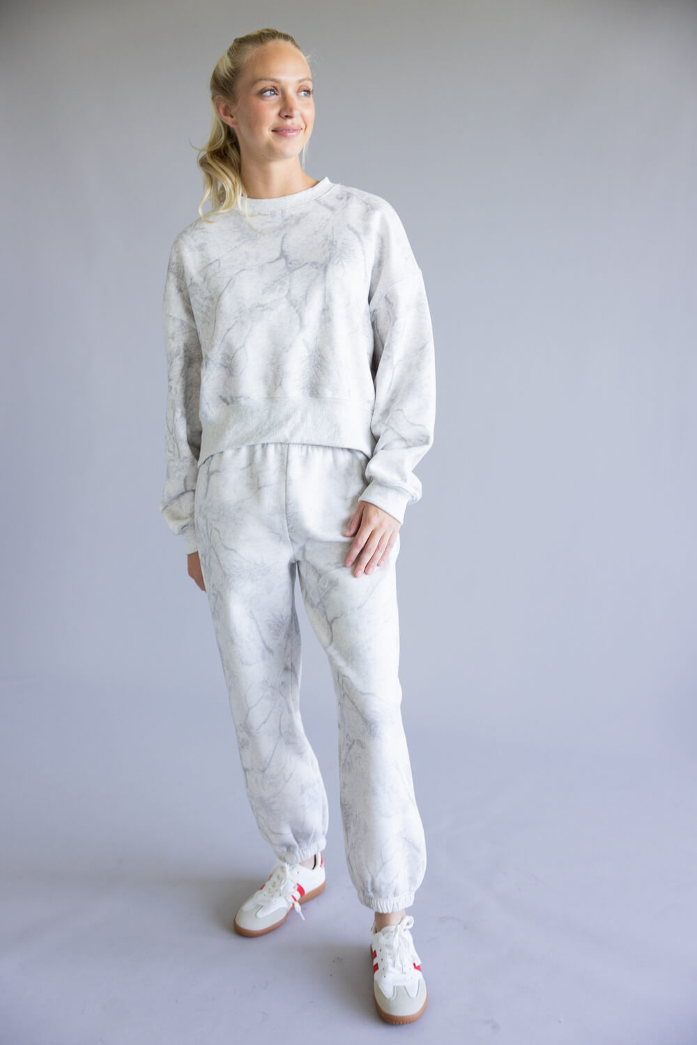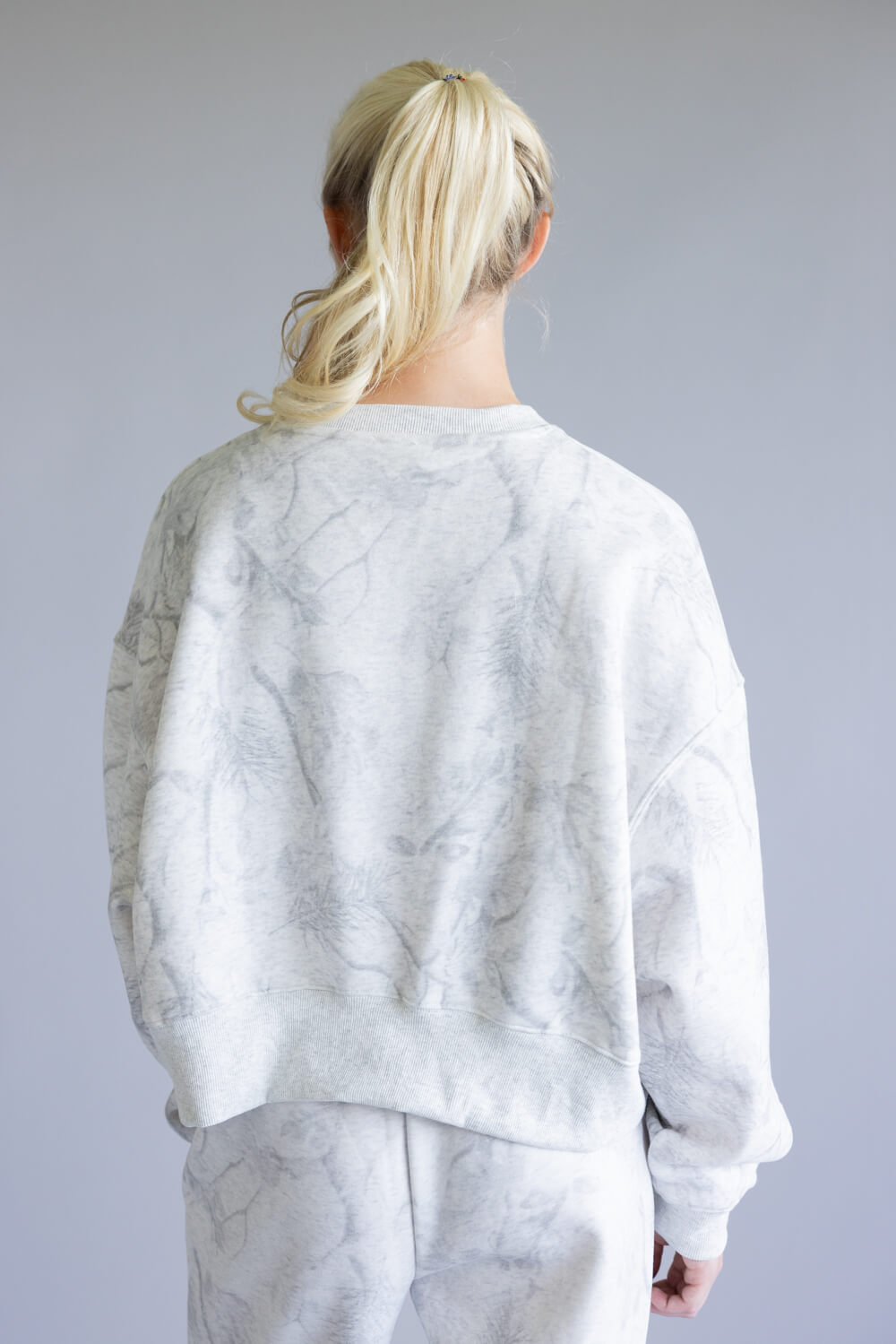 Camo Drop Shoulder Crewneck Fleece Sweatshirt for Women in Grey