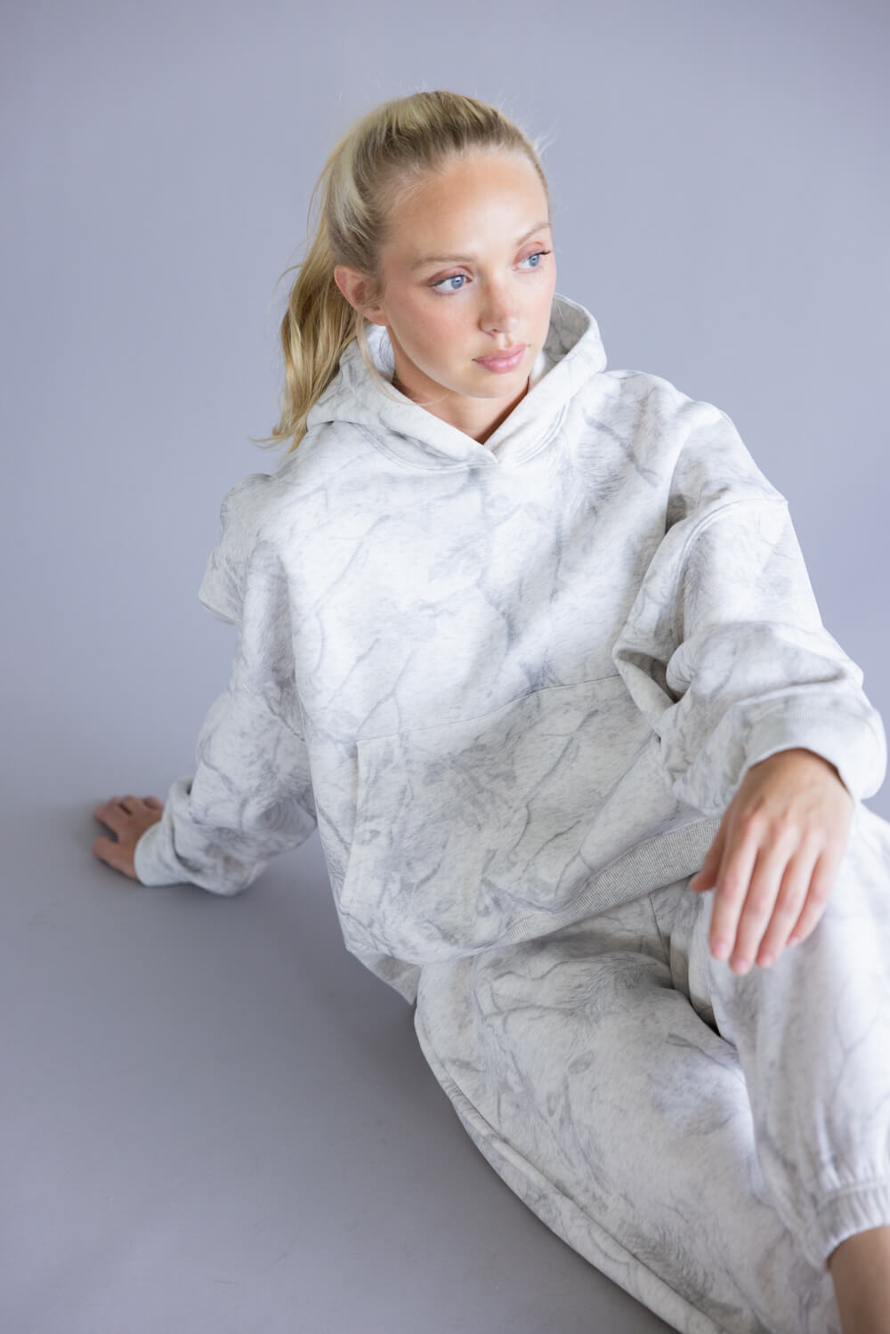 Stay cozy and stylish with this Camo Fleece Hoodie for Women in Grey. Crafted from soft fleece, neutral color and trendy all over camo pattern, this sweatshirt is ready for any season.