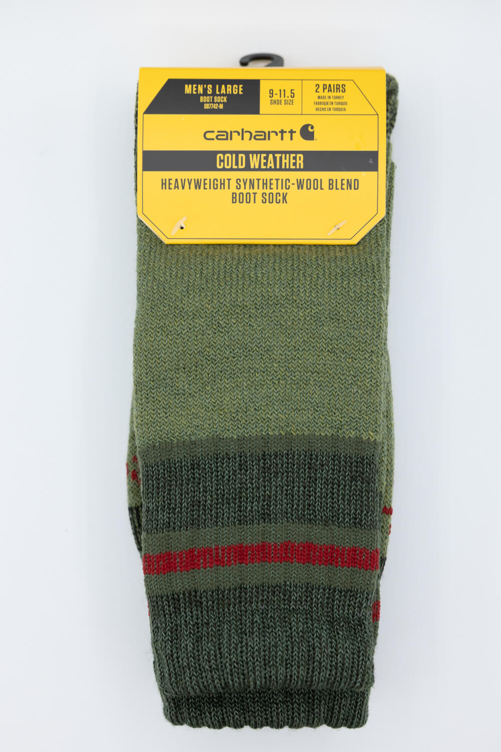 From hiking to work, these Carhartt Heavyweight Synthetic-Wool Boot Blend 2 Pack Boot Socks for Men in Burnt Olive are made for comfort during your day. This heavyweight synthetic wool material and fights odor make these socks will support you all day long.