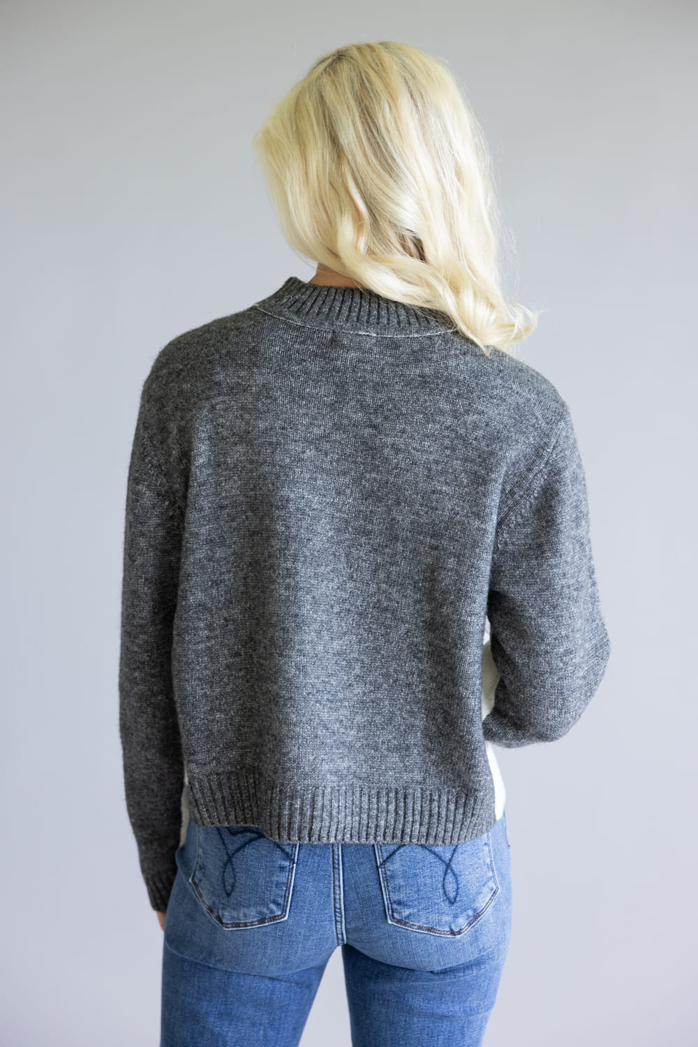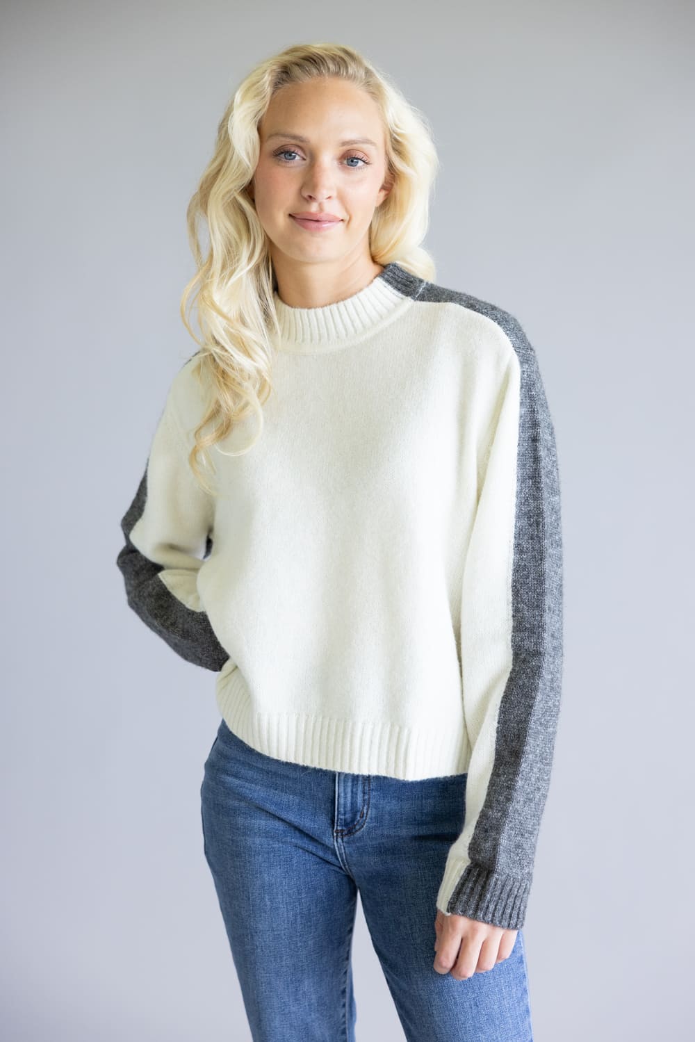 This Elan Color Block Sweater for Women in Grey/White gives you a luxurious and stylish look with its neutral colors, long sleeves, and soft fabric! Add some glamour to your wardrobe with this must-have piece!
