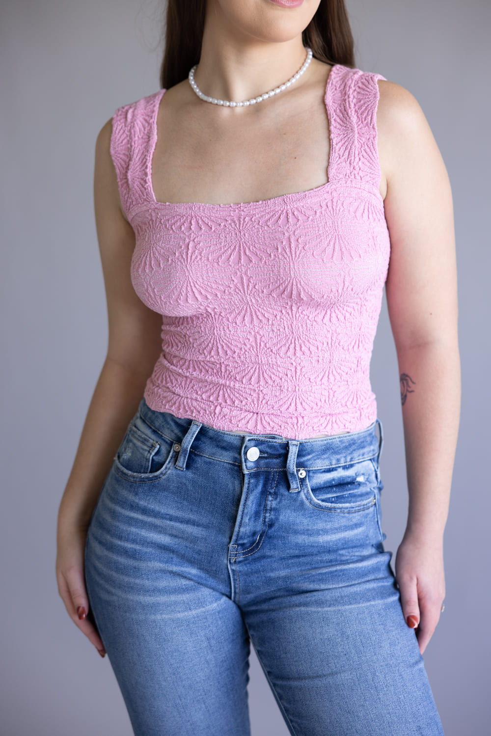 Add the perfect touch of texture to every look with Free People Intimately Love Letter Cami for Women in Pink. So sweet cami featured in a cropped, square-neck silhouette and jacquard floral design with statement lettuce-edge hemline.