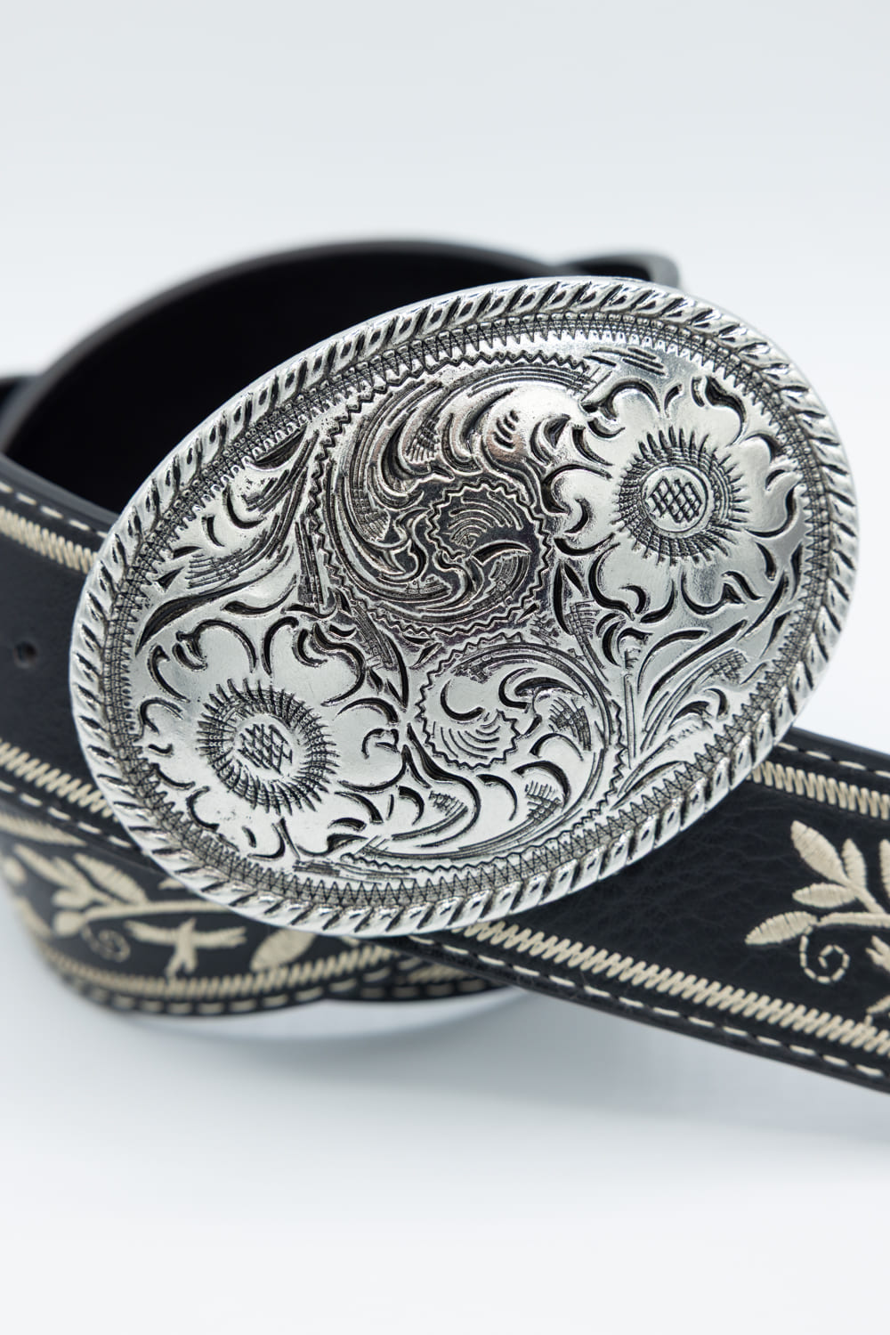 Give your outfit some love with the Large Circle Engraved Buckle Belt for Women in Black! Featuring a versatile design, embroidered elements and Western feel, this belt is sure to add a special touch to any outfit!