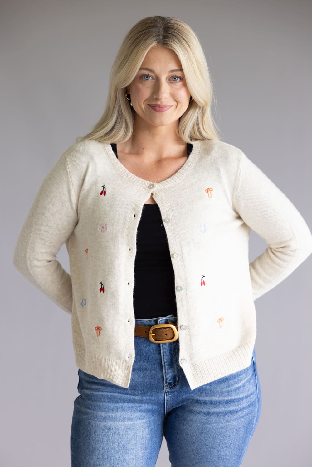Elevate your wardrobe with this Miracle Embroidered Details Cardigan for Women in Cream! This ultra lightweight layer drapes beautifully over any outfit, while the incredibly soft fabric feels luxurious against your skin.
