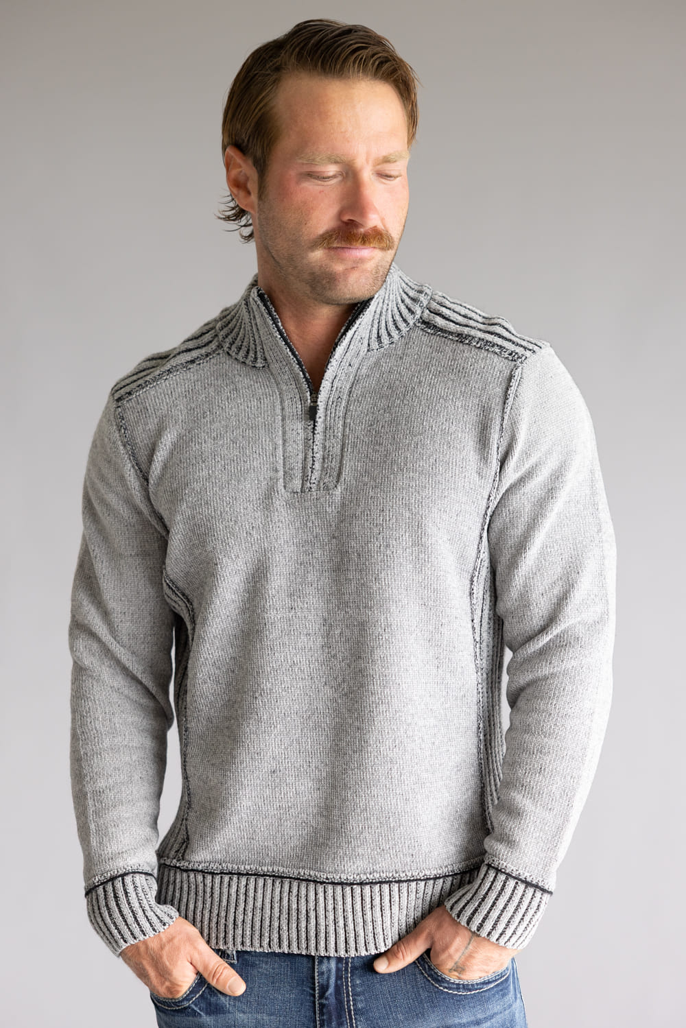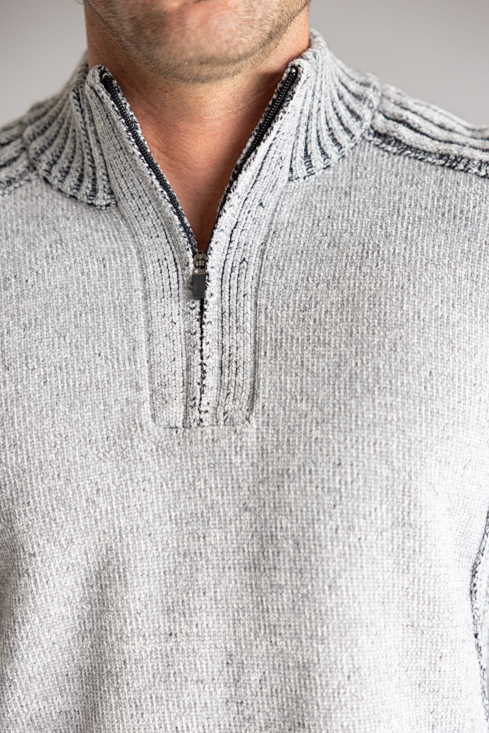 North River 1/4 Zip Neck Chenille Sweater for Men in Grey