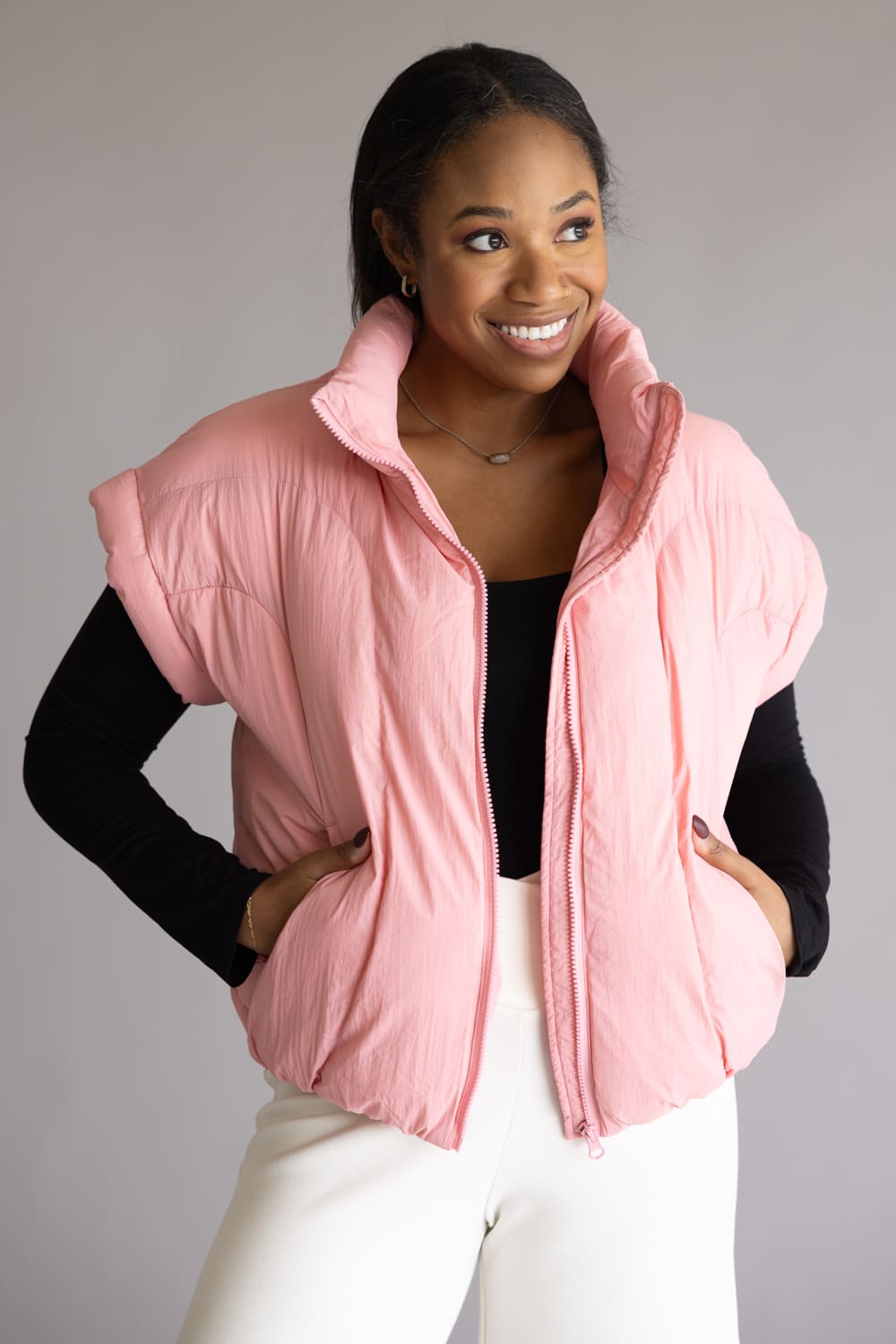 Simply Southern Lottie Puffer Vest for Women in Pink