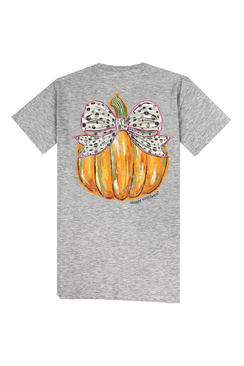 Pick the best of the patch with this Simply Southern Plus Size Bow Pumpkin T-Shirt for Women in Grey! With an adorable graphic, cute color, and lightweight design, this short sleeve tee is perfect for any occasion.
