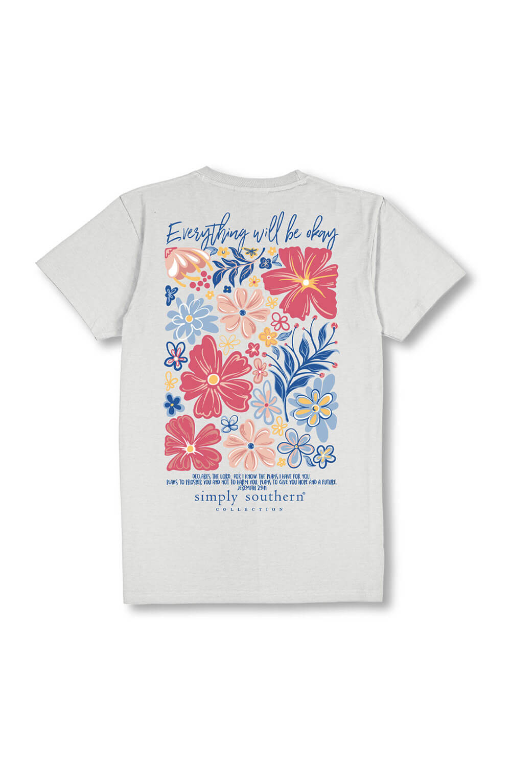 Simply Southern Youth Everything Will Be Okay T-Shirt for Girls in Beige