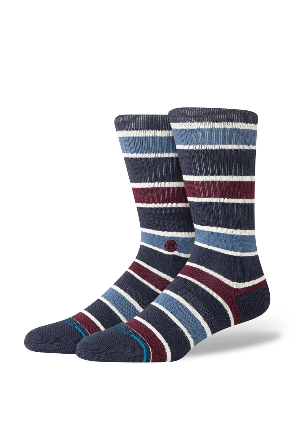 Get ready for the colder weather with these Stance Devon Crew Socks in Navy! They feature a multi colored stripe print, crew height, and comfortable cushioned design. Grab your pair today!