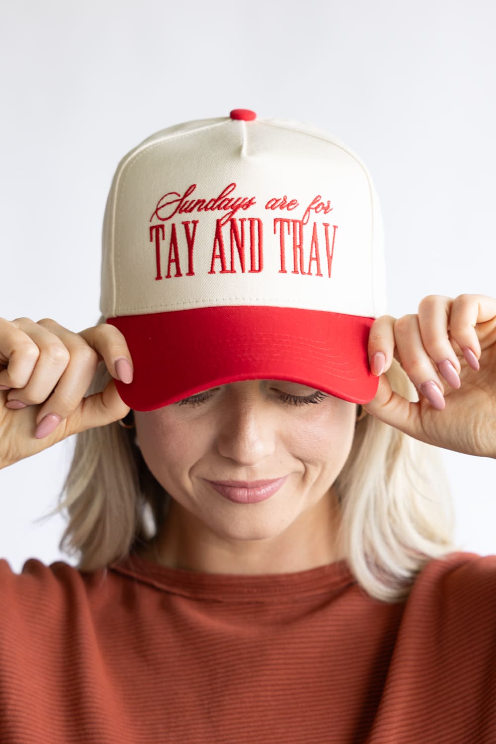 Sundays Are For Tay And Trav Trucker Hat for Women in Red/Tan