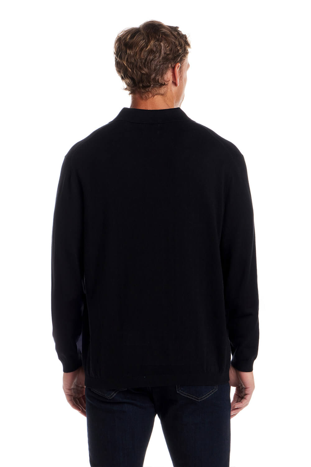 Weatherproof Cotton Cashmere Sweater Polo Shirt for Men in Black