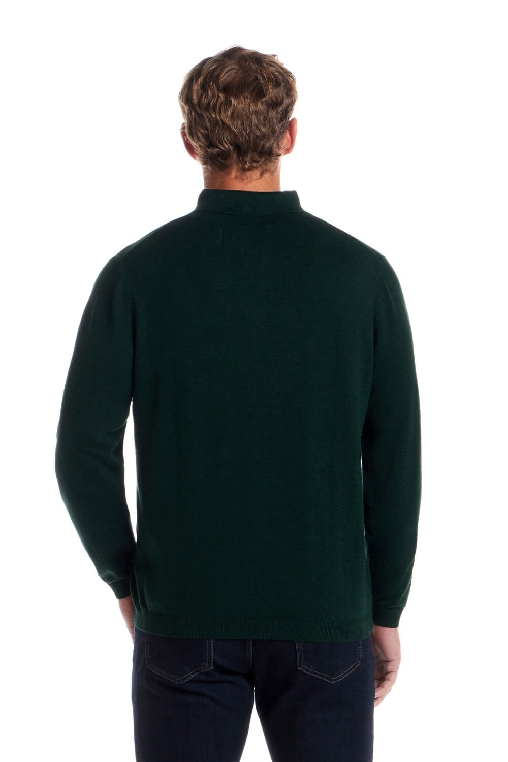 Weatherproof Cotton Cashmere Sweater Polo Shirt for Men in Pine Green